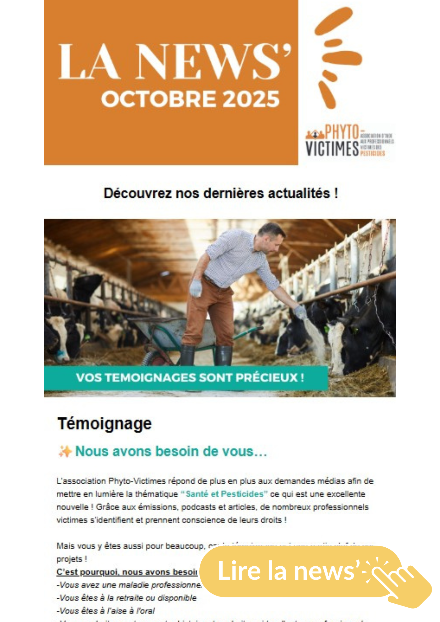 L’association vous présente ses newsletters 2025 : N’hésitez pas à les lire pour connaître notre actualité ! Mars 2025 : Le combat d’Alain, BD, déplacement aux Antilles… Avril 2025 : AG et colloque 2025, ciné-débat, Parkinson, Alain… Mai 2025 : AG 2025, Cagnotte enfants, présentation Audrey… Juin 2025 : Appel à mobilisation : Julien GUILLARD Juillet 2025 : Bilan AG 2025 et cagnotte enfants, nouveau bureau Août 2025 : Visio conférence, GRATALOUP, CEPAHGES, BD Septembre 2025 : Septembre en or, visio ensemble, rapport FIVP… Octobre 2025 : Témoignages précieux, livret aidants, une victoire…